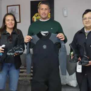 El Intendente Municipal Ing. Sebastián Walker, visitó el cuartel de Bomberos Voluntarios de Pila y realizó la entrega de equipos de neoprene, especialmente diseñados
