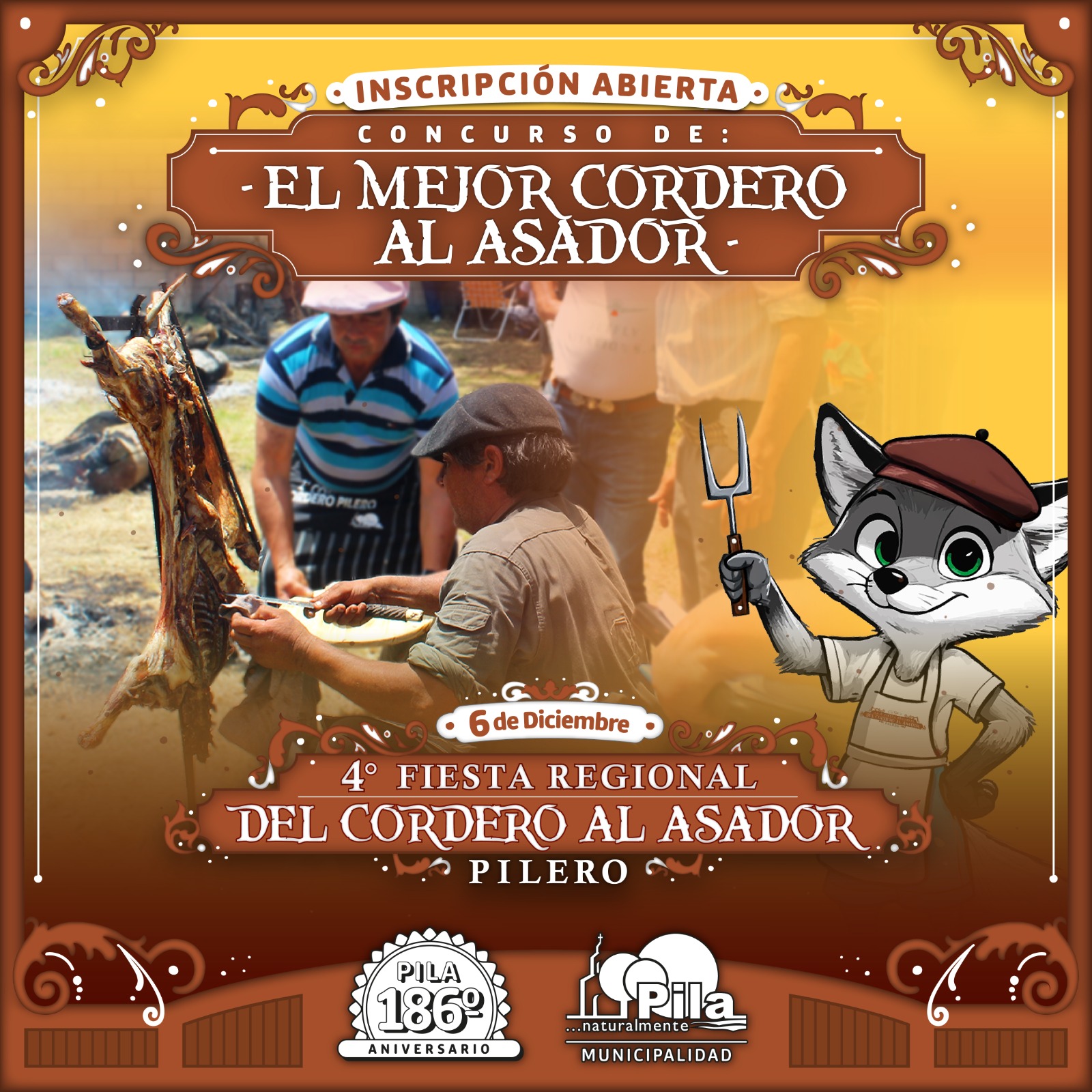 Se acerca nuestro Aniversario N°186 y viene una nueva edición del Concurso de «El mejor cordero al asador Pilero» y ya podés inscribirte en Casa de Cultura o comunicándote al 2241408641.
